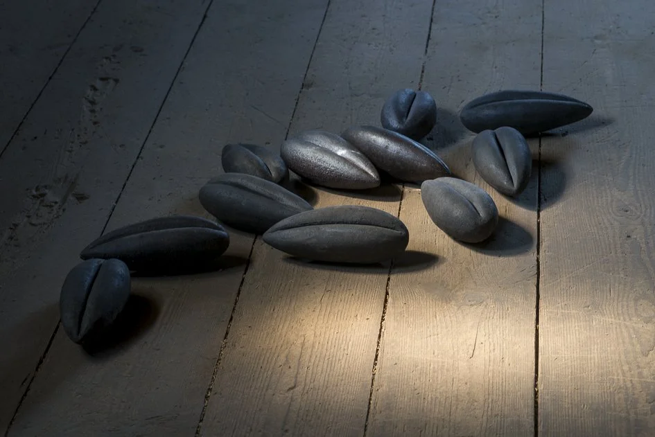 Many works of art address the problem of proximity and distance: depending on which device we use or which way round we hold it, a work may either appear vast (through a magnifying glass or under a microscope) or minute (through the wrong end of binoculars). The sculptor Alberto Giacometti solved this problem by radically paring back the physicality of his figures: from close to they convey a sense of distance and remoteness. Wolski does the opposite: he places a burning glass directly on the object, which now appears huge. We see with extreme clarity. It is as if we were given not only the blueprint of a work but also its genome. As if to prove a point, Grains (1988) consists of a handful of enlarged grains made from terracotta: Look, that’s where I’m from. As a child I often went to the lab in Dańków with my father, helped with analyzing the seeds, and spent hours counting hundreds of grains out of one container and into another. That was my first brush with infinity. But another infinity is less apparent and goes back even further; it is in a box in which Xawery’s mother Anna Branicka carefully kept beautiful little collectibles, which have barely lost their appeal, even after many years. Little things often seem large in our memories, and the substance of large things tend to turn into shadows that are less tangible, yet still palpable and even heritable.