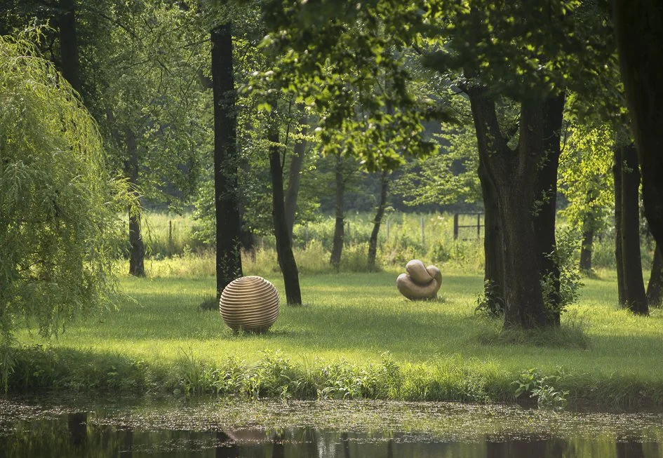 It is time for us to pin down what has been said so far: in fact we are in the grounds of a Polish estate in the countryside near Dańków, which is around seventy kilometers from Warsaw. This estate, once home to the Wolski family, was expropriated by the Polish regime after World War Two. Ever since the nineteenth century Wolski’s ancestors have investigated and optimized the genetic makeup of seed crops. Crossing wheat and rye, for instance, produces a robust cereal crop that is still highly valued in Poland and beyond. Tadeusz Wolski, father to Xawery Wolski, was a renowned plant breeder who was employed in Dańków as director of the facility during the Communist regime; meanwhile his family lived in Warsaw. In the late 1990s Tadeusz Wolski was able to buy back large tracts of the family seat, including the properties on the estate. His son Xawery had left his homeland in the mid-1980s due to the aftermath of the imposition of martial law in Poland. It was only after his father’s death in 2005 and some years of rapprochement that he moved back to Poland and turned the estate in Dańków into the headquarters of a foundation for his art. The numerous sculptures now installed in the grounds of the estate include the object we initially approached with some caution: Sphere (2022), bronze, 200 centimeters in diameter. Not far away other related sculptures, such as Vortice (2002–05) await our attention. The spiraling motif that seems to characterize these spherical forms connects all these strange, compact bronze globes as one family, just waiting to be investigated in these extensive grounds.